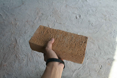 membuat bata tidak semudah yang kita bayangkan selain memilih tanah yang baik mengaduknya dengan teknik khusus...ditekan-tekan dan akhirnya dicetak dengan kayu hasil buatannya sendiri.